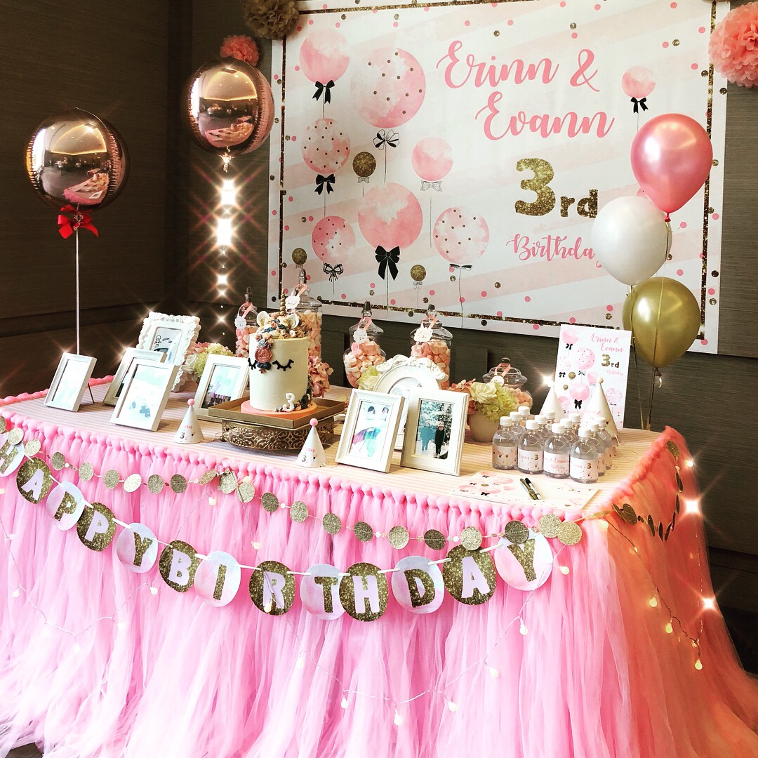 經典的粉金點點搭配派對中不可少的氣球,結合女孩都愛的蝴蝶結